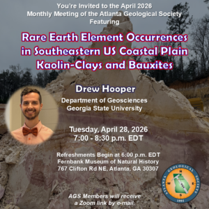 Here’s the new logo for our AGS T-shirts and apparel. The winning design was selected by a vote of membership among seven submitted designs. Nikki Knutson will receive a $75 prize at our annual dinner social at Fernbank Museum on June 30th. T-shirts will be offered for sale via online link during May and will be available for pickup at the June 30 dinner meeting.